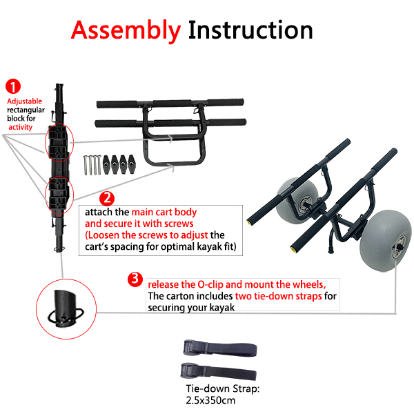 | Componentes incluidos | carro de kayak, ruedas, correas |