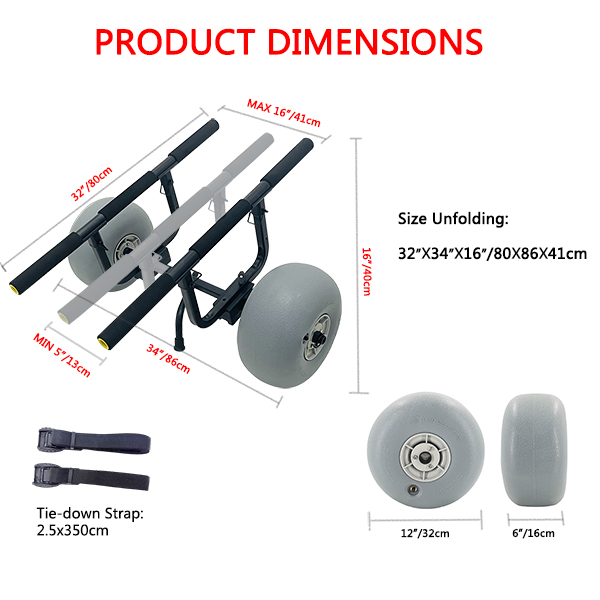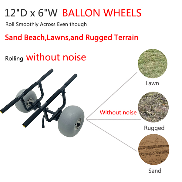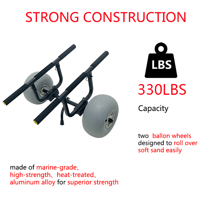 Fácil maniobrabilidad con ruedas de playa: el carrito universal para kayak está equipado con dos ruedas de playa diseñadas específicamente para rodar sobre arena suave con facilidad. Estas resistentes ruedas tienen una capacidad de carga de 330 libras, lo que garantiza que puedan soportar el peso de su kayak sin esfuerzo.